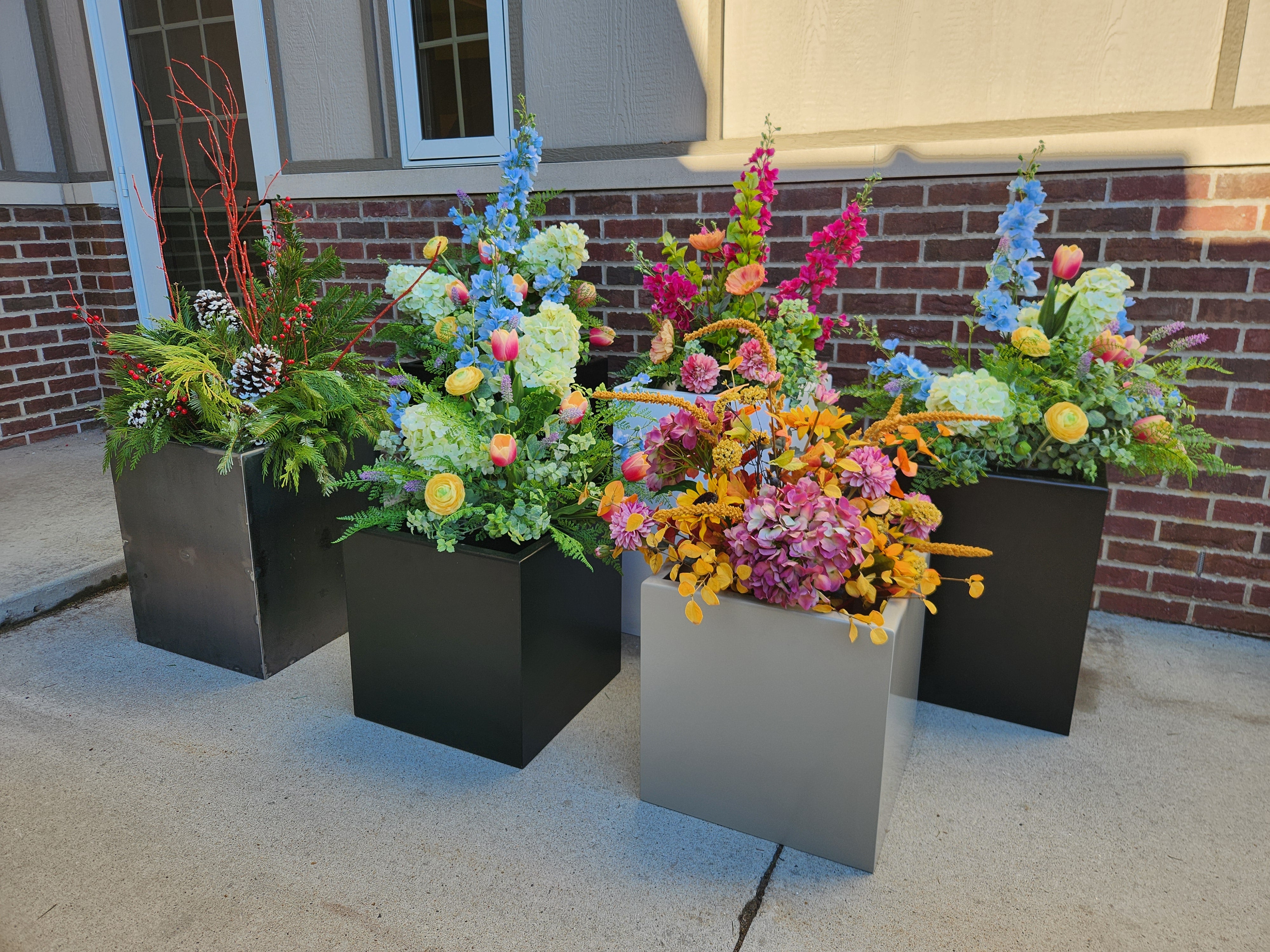 Available in six versatile sizes, our planter boxes are designed to work everywhere from retail spaces to large commercial landscapes. A consistent 16” × 16” footprint allows for seamless planning and mixed-height installations, while an integrated false bottom with drainage holes supports healthy planting and proper water flow.